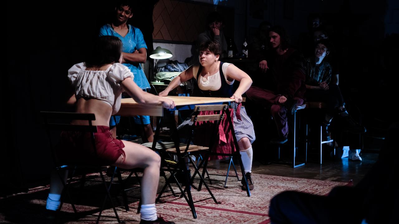 In einem österreichischen Wirtshaus verschmelzen Zirkus, Text, Tanz und Satire zu einem Gstanzl voller Tradition und frischer Ideen. Am STAMMTISCH werden in bester Wirtshausmanier Fragen wie „Wem gherst’n du?“ diskutiert, belacht, zerstritten und besungen. Zwischen poetischen Monologen und deftigen Schreidualen geht es um alles: Lässt sich Tradition vom Konservativem trennen? War früher alles besser? Darf eine Feministin Kühe melken? Und kann man statt Bier zu trinken auf Flaschen balancieren?