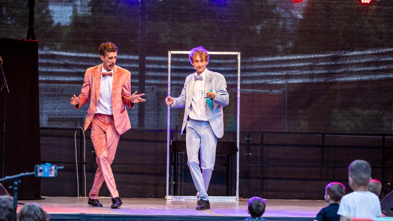Eine sehr humorvolle Zaubershow, in der ein Duo aus leicht verpeilten, aber äußerst